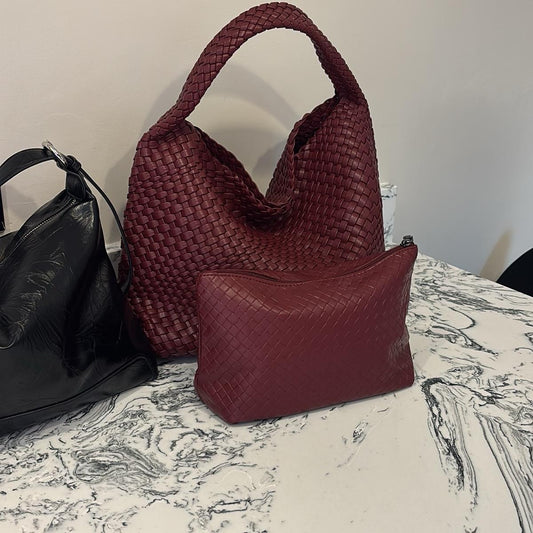 ‘Kara’ Woven Bag set of 2 by Aura Studio - Burgundy