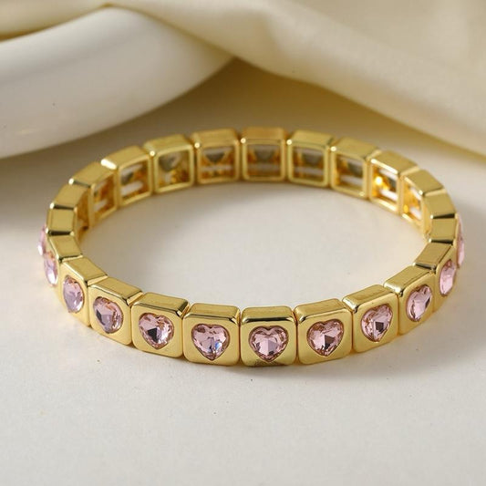 ‘Rosie’ Pink Heart Elastic Bracelet by Aura Studio