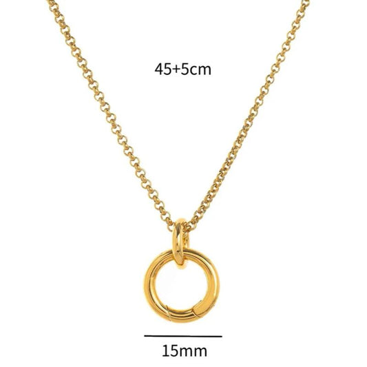 Starter Charm Ring Necklace - Stainless Steel - Gold