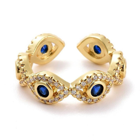 Stainless Steel Evil Eye Adjustable Ring by Aura Studio